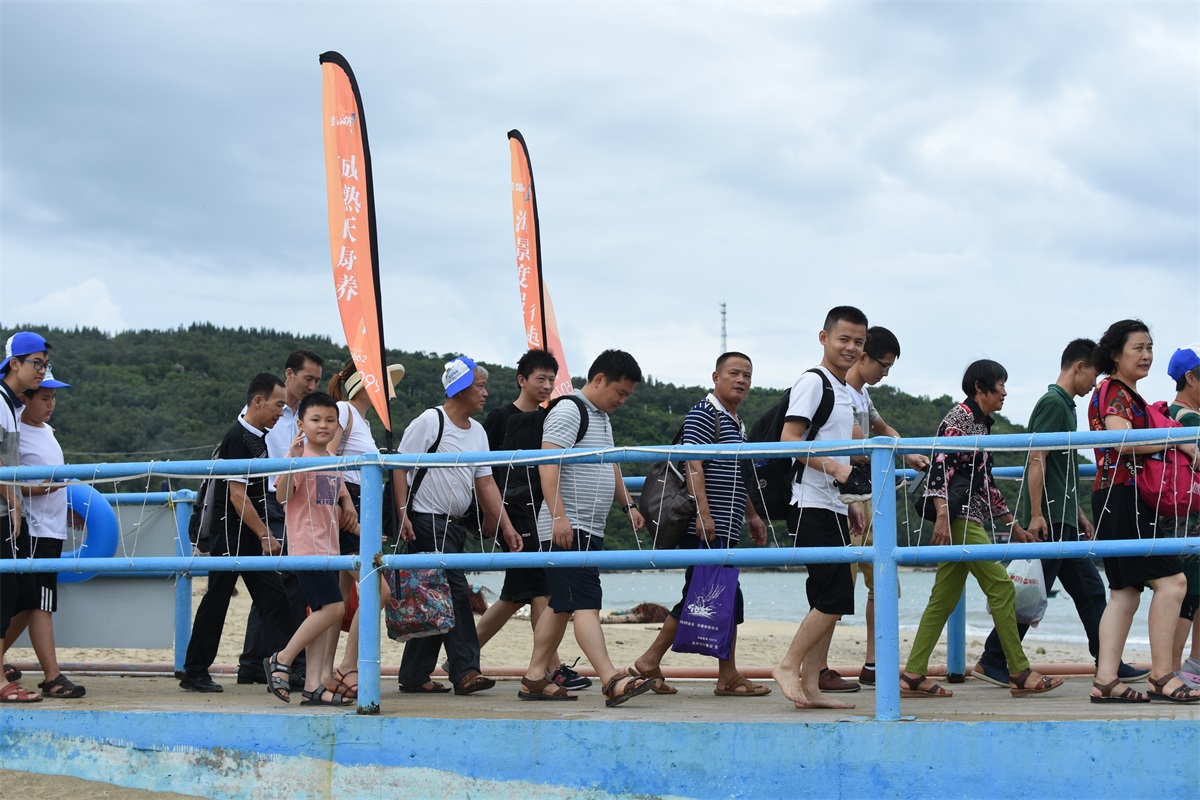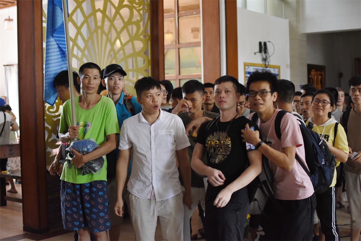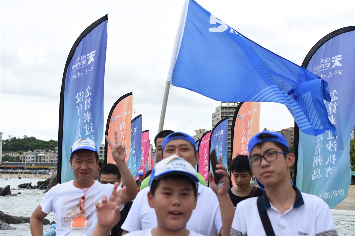 8月19號(hào)一大早,微風(fēng)拂面,大家都喜笑顏開,懷著無比激動(dòng)興奮的心情踏上前往沙扒灣青州島的旅途。手中天藍(lán)色的旗幟,仿佛已感受到大伙兒的陽光與自信,也在空中翩翩起舞。